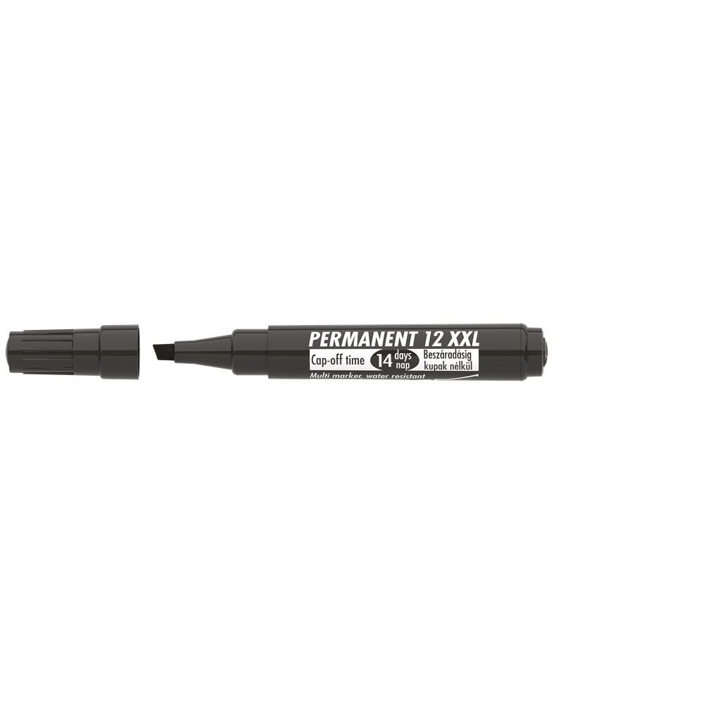 Műanyag, üveg, fém, fa, illetve szinte minden felület feliratozására, jelölésére alkalmas, alkoholbázisú festékkel töltött permanent marker. Speciális tulajdonsága, hogy 14 napig kupak nélkül sem szárad be. Gyorsan száradó festék, írásképe törlés- és vízálló. Megnövelt élettartam a nagyobb méretű testnek köszönhetően. Vágott csúccsal. Vonalvastagság: 1-4 mm. Katalóguskód: 24648
