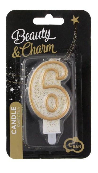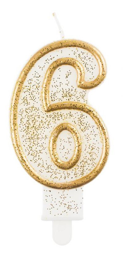Arany csillámos 6-os Gold számgyertya, tortagyertya