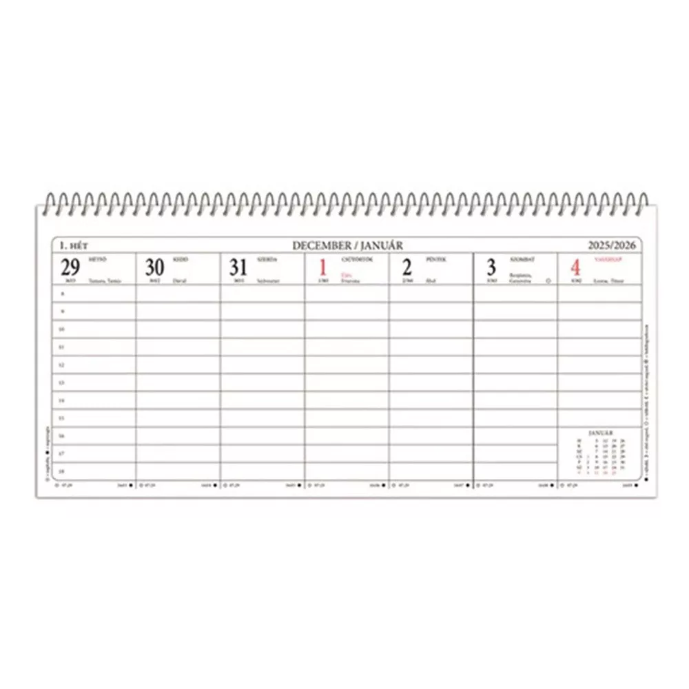 Fehér tömbös álló asztali naptár. Spirálos kivitel.