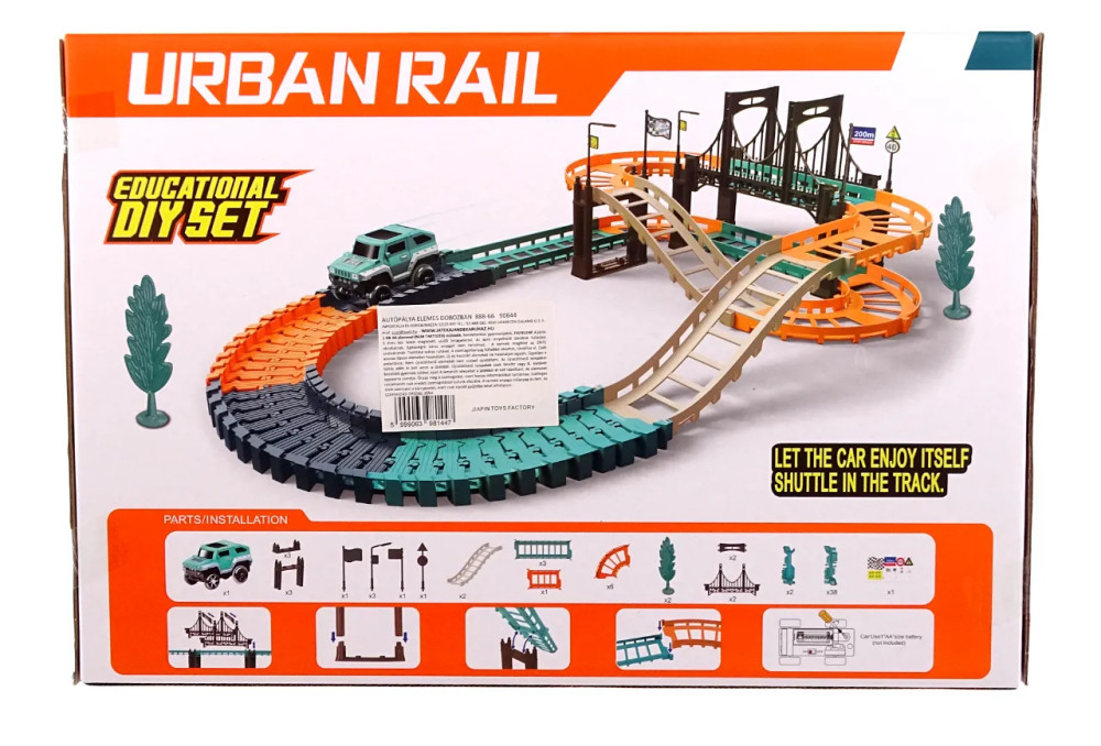 Ezzel a szettel a gyerekek saját autópályát építhetnek szobájuk közepén. A kanyargós, több szinten is mozgó út egy méretes híddal is rendelkezik mely a pálya központi részét alkotja. Szettünk egy minőségi kisautót is tartalmaz melyet ha bekapcsolunk, magától is képes körbe-körbe menni a pályán.