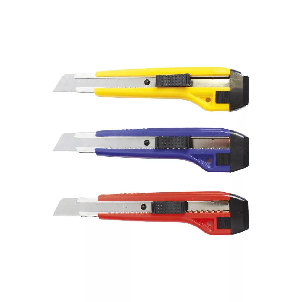 Univerzális kés,könnyű kezelhetőség - visszahúzható penge - műanyag tok. Penge szélesség: 18mm Katalóguskód: 23275