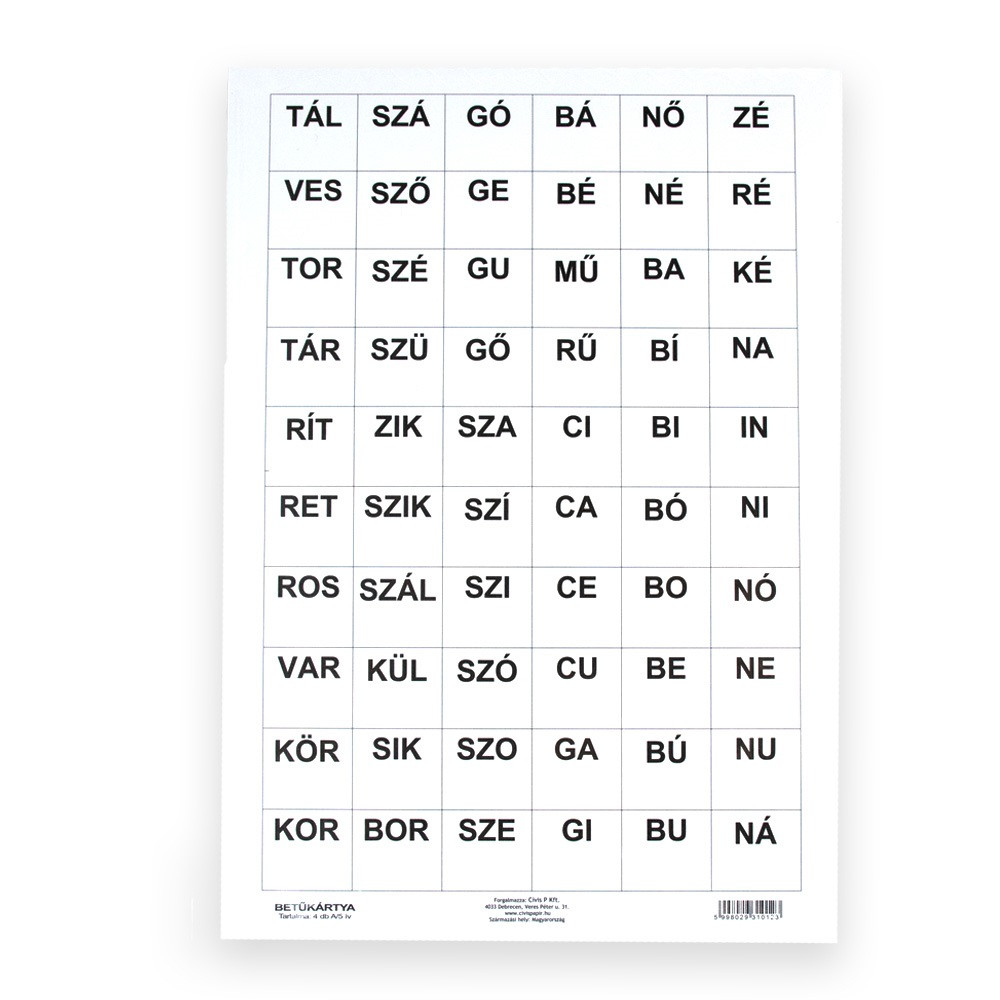 A betűk könnyebb elsajátítására, valamint a szavak megformálására alkalmas. 2 ív betűkártya, és 2 ív szókártya található a csomagban. Katalóguskód: 67041