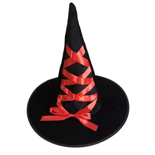 Fekete Boszorkány Kalap Piros Szalaggal - Varázslatos Elegancia