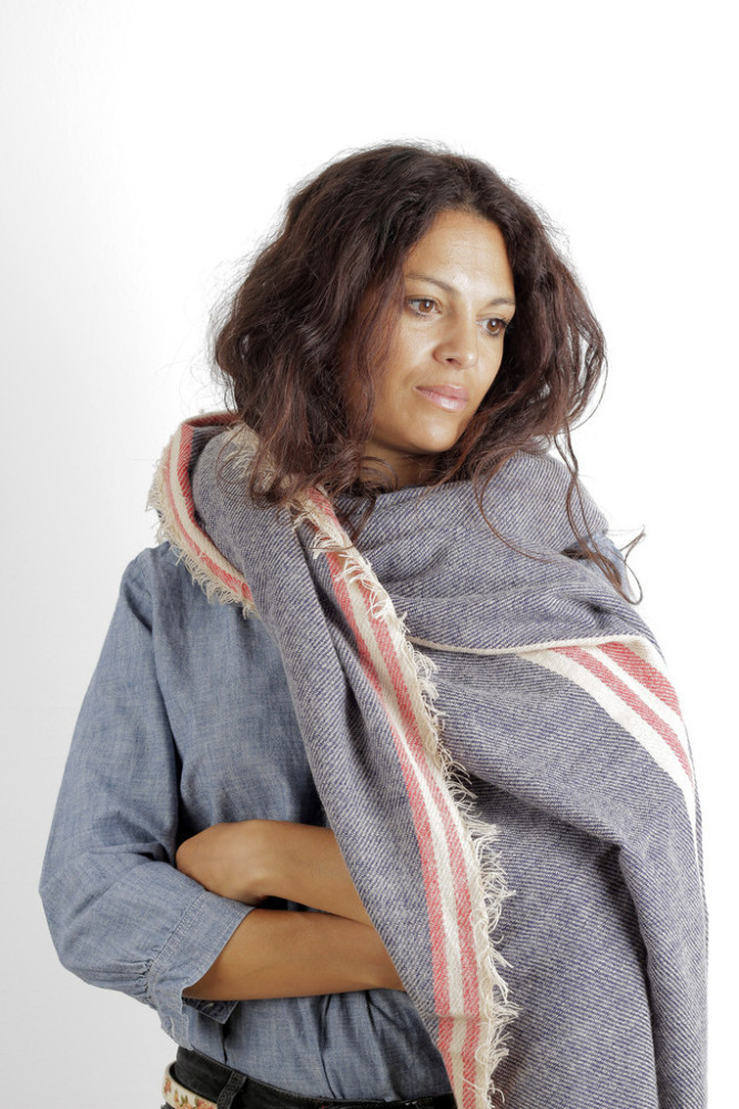 Cecilia Gallerani sál - 200x98 cm - farmerkék, csíkos
