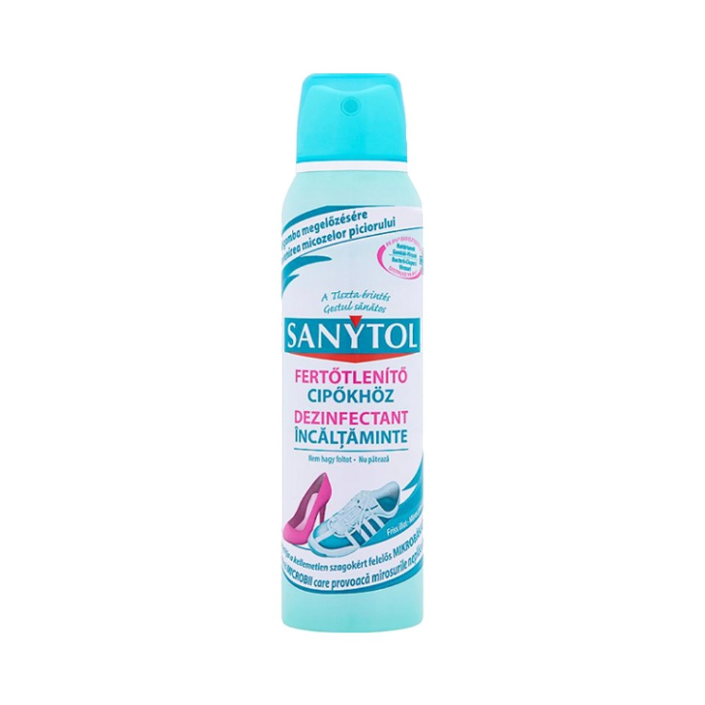 A Sanytol Fertőtlenítő spray cipőhöz egyedülálló hatóanyaga megszünteti a kellemetlen szagokat, így garantálja a frissességet, és elpusztítja a mikrobákat is. Egyedülálló hatóanyaga a belső rétegekig hatolva fertőtlenít, felveszi a harcot a mikrobák, gombák, vírusok és baktériumok ellen. Elpusztítja többek között: a gombás fertőzések, a szemölcsök, a lábgomba kialakulásáért felelős mikrobákat. Nem tartalmaz klórt.