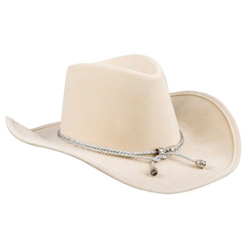 Cowboy kalap, velúrból. Magassága: 13 cm, szélessége: 22 cm, hosszúsága: 44 cm.