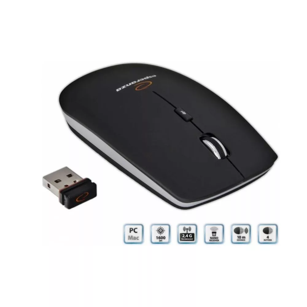 EGÉR VEZETÉK NÉLKÜLI FEKETE-SZÜRKE 4D 1600DPI 3 GOMBOS 2,4GHZ ESPERANZA SATURN