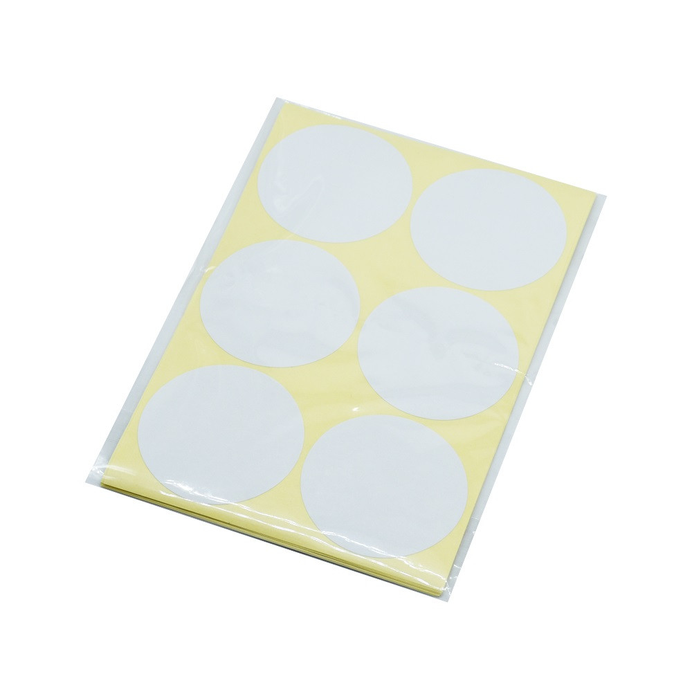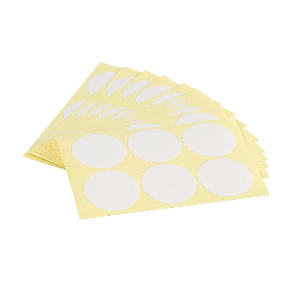 Nyomásra tapadó fehér,kör alakú etikett címke, 50mm átmérőjű, 6 címke/lap, 10lap/csomag Katalóguskód: 12384