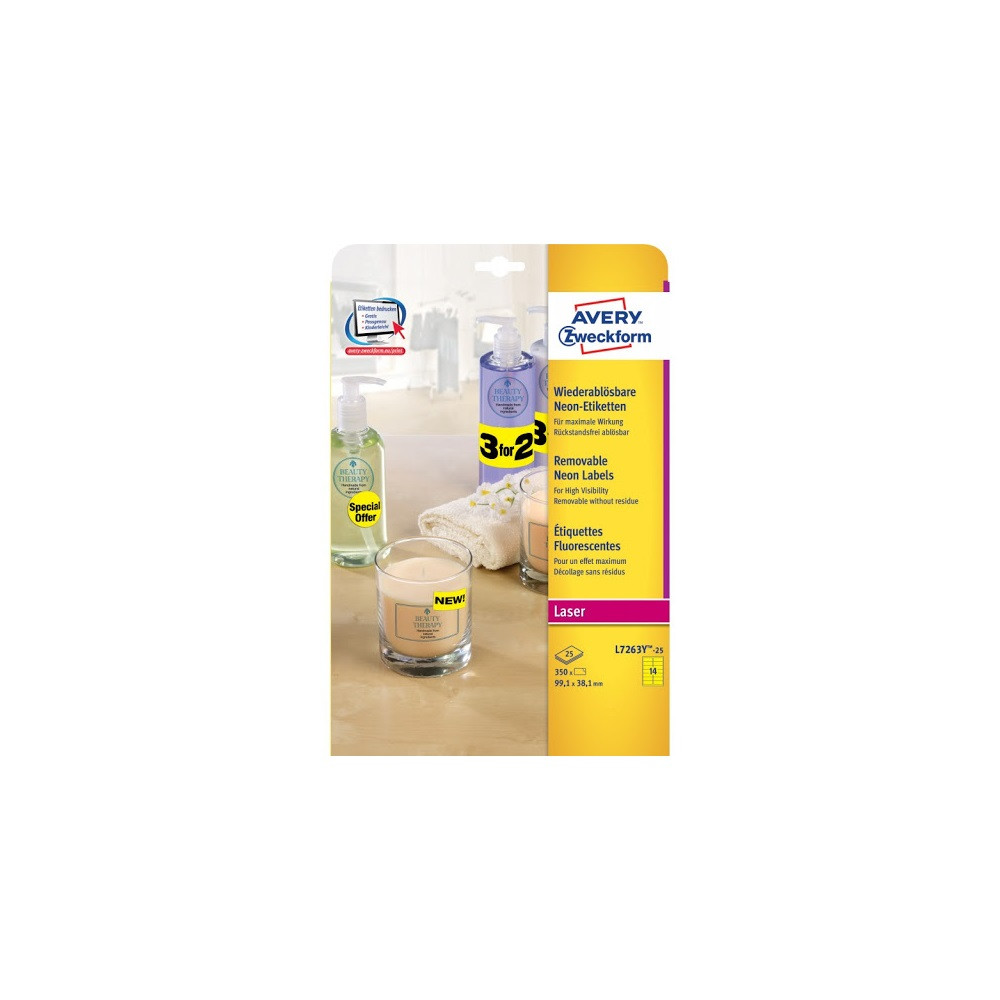 Etikett címke, 99,1 x38,1mm, visszaszedhető, neon 14 címke/ív, 25 ív/doboz, Avery sárga