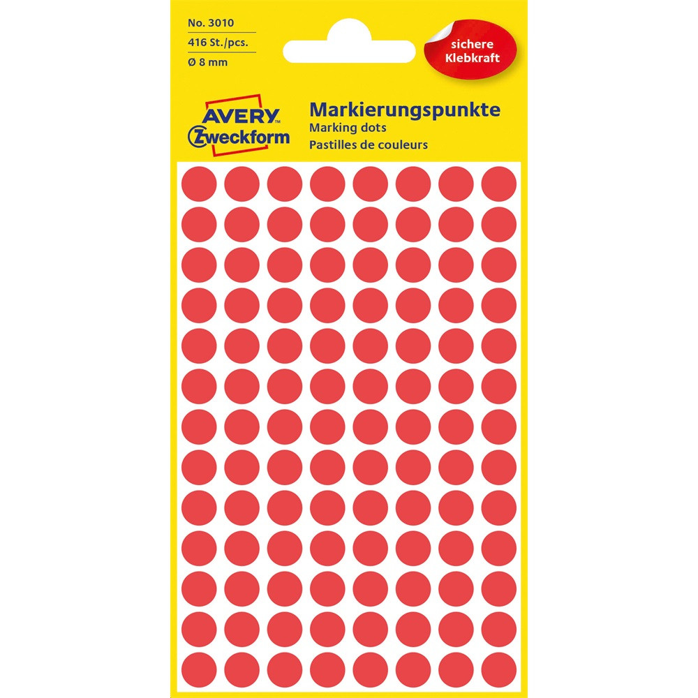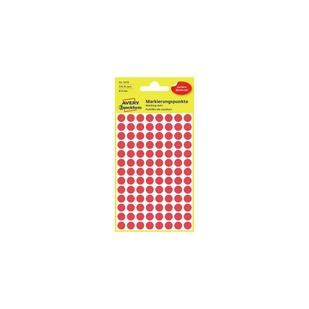 Etikett címke, o8mm, jelölésre, 4 ív/doboz, Avery piros