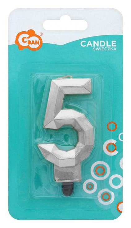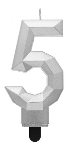 Ezüst 5-ös Diamond Metallic számgyertya, tortagyertya