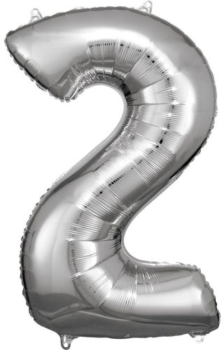 Ezüst Silver óriás szám fólia lufi 2-es, 86x53 cm