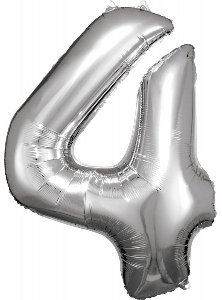Óriás 4-es szám Fólia lufi, Silver 86*66 cm