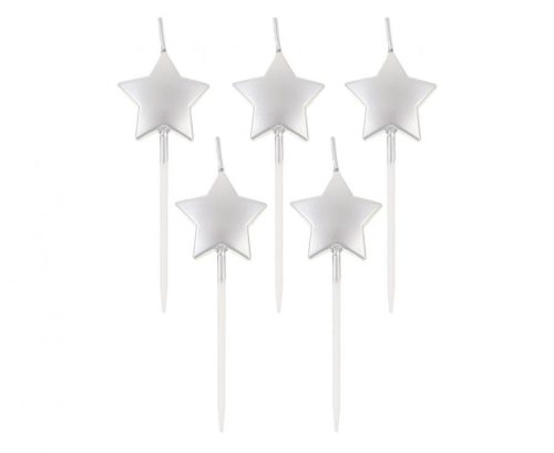 Ezüst csillag tortagyertya, gyertya szett 5 db-os