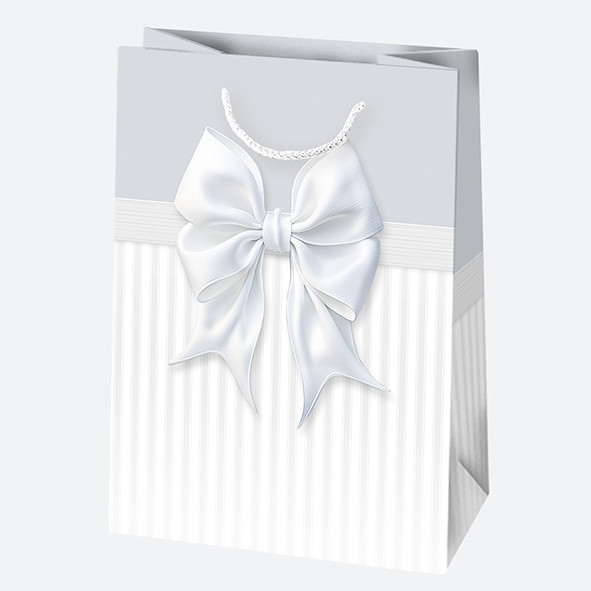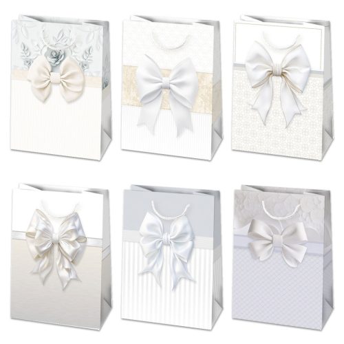 Fehér Bow papír ajándéktasak, ajándékzacskó 23x32x11 cm