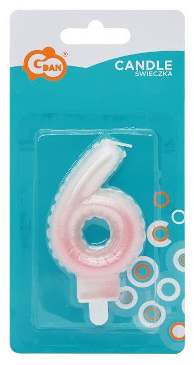 Fehér-Rózsaszín 6-os Ombre számgyertya, tortagyertya