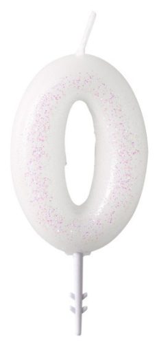 Fehér White csillámos gyertya 0-ás 6,5 cm