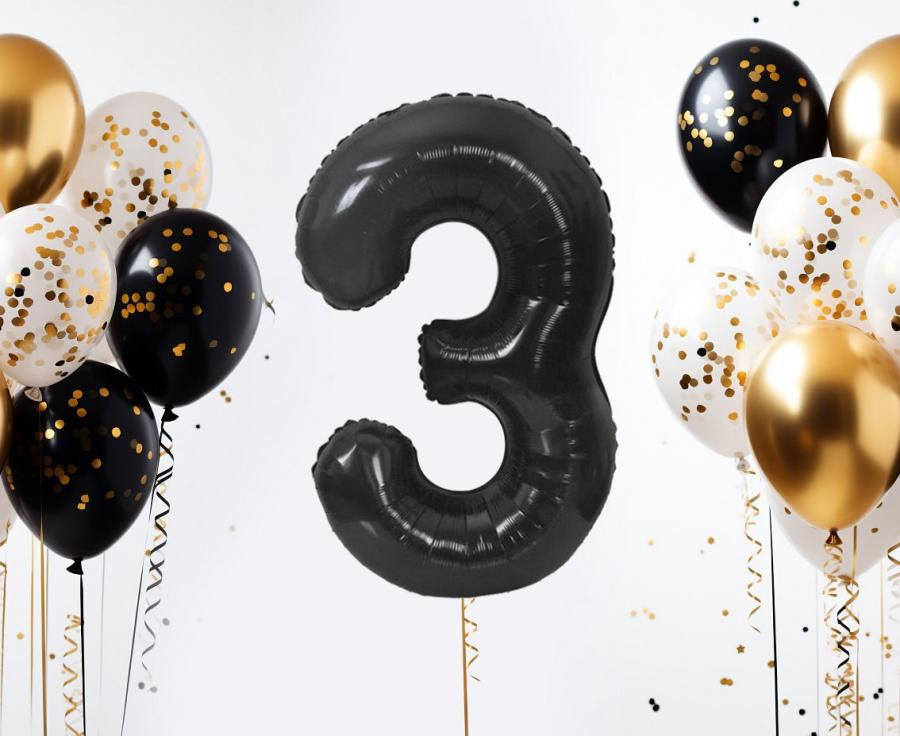 Fekete 3-as szám fólia lufi 85 cm