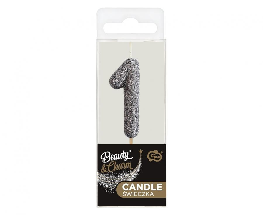 Fekete Glitter Black számgyertya, tortagyertya 1-es