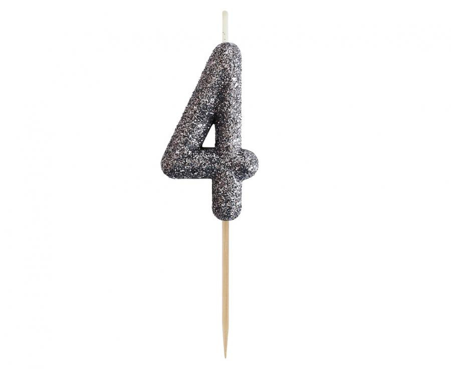 Fekete Glitter Black számgyertya, tortagyertya 4-es