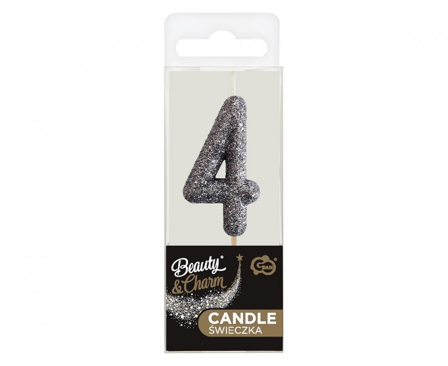 Glitter Black, Fekete számgyertya, tortagyertya 4-es