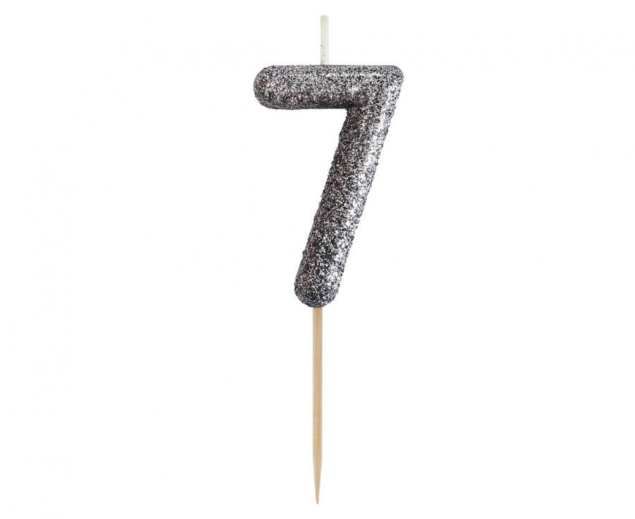 Fekete Glitter Black számgyertya, tortagyertya 7-es
