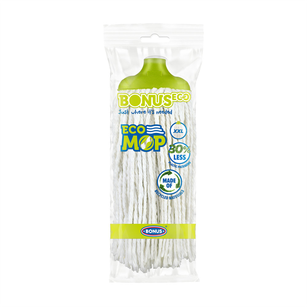 Egy ilyen klasszikus, sokoldalú terméket a környezetbarát megoldások tesznek még szerethetőbbé. Annak érdekében, hogy védjük a Földet, a BONUS CottonMOP-ot újrahasznosított pamutból készítettük. Mit jelent ez pontosan? A felmosófejben kidobott és fel nem használt szövet és ruházati termékek kelnek új életre.