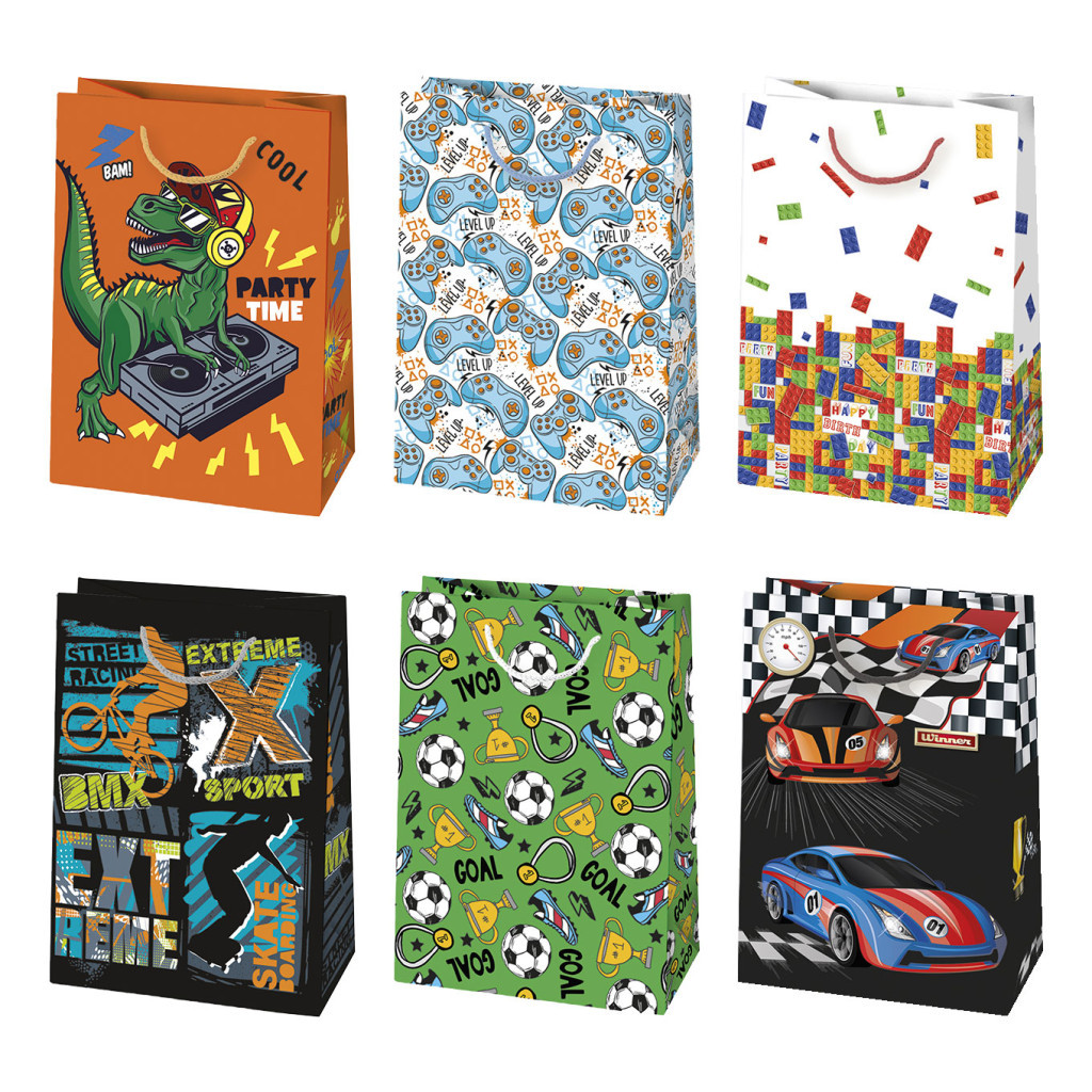 Fiús Party papír ajándéktasak, ajándékzacskó 23x32x11 cm