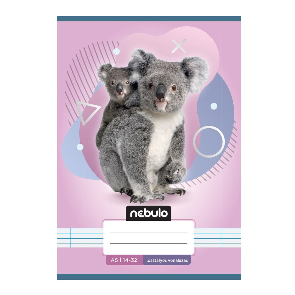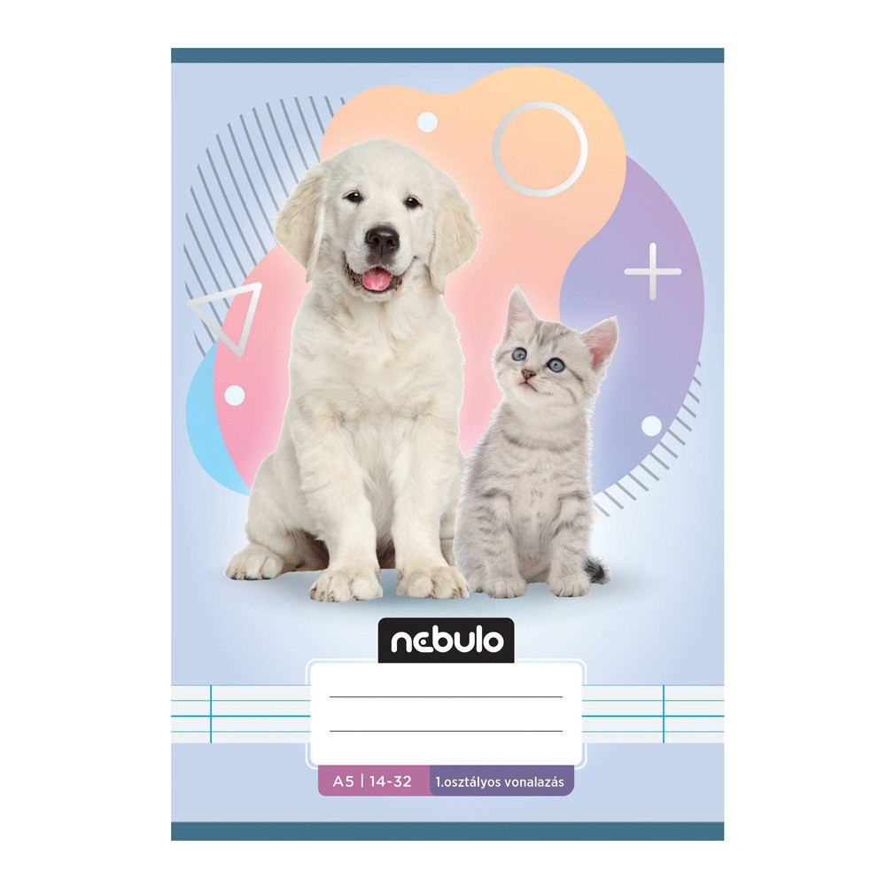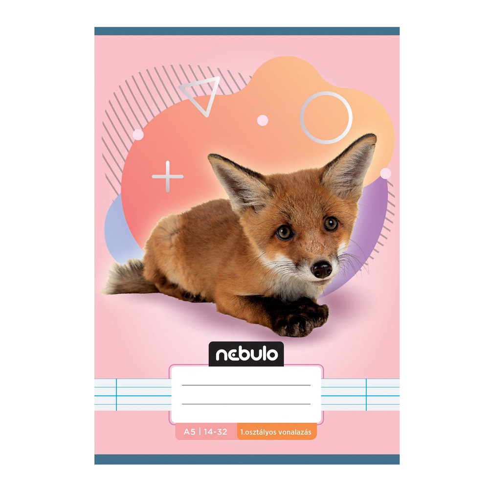 Füzet, A5, 1. osztályos vonalas, 14-32, Állatos minták, 16 db/csomag Nebulo