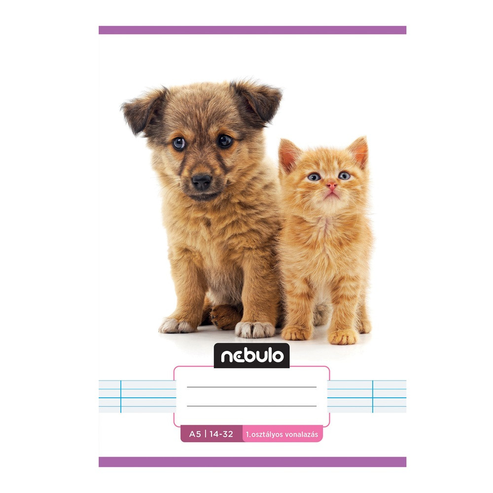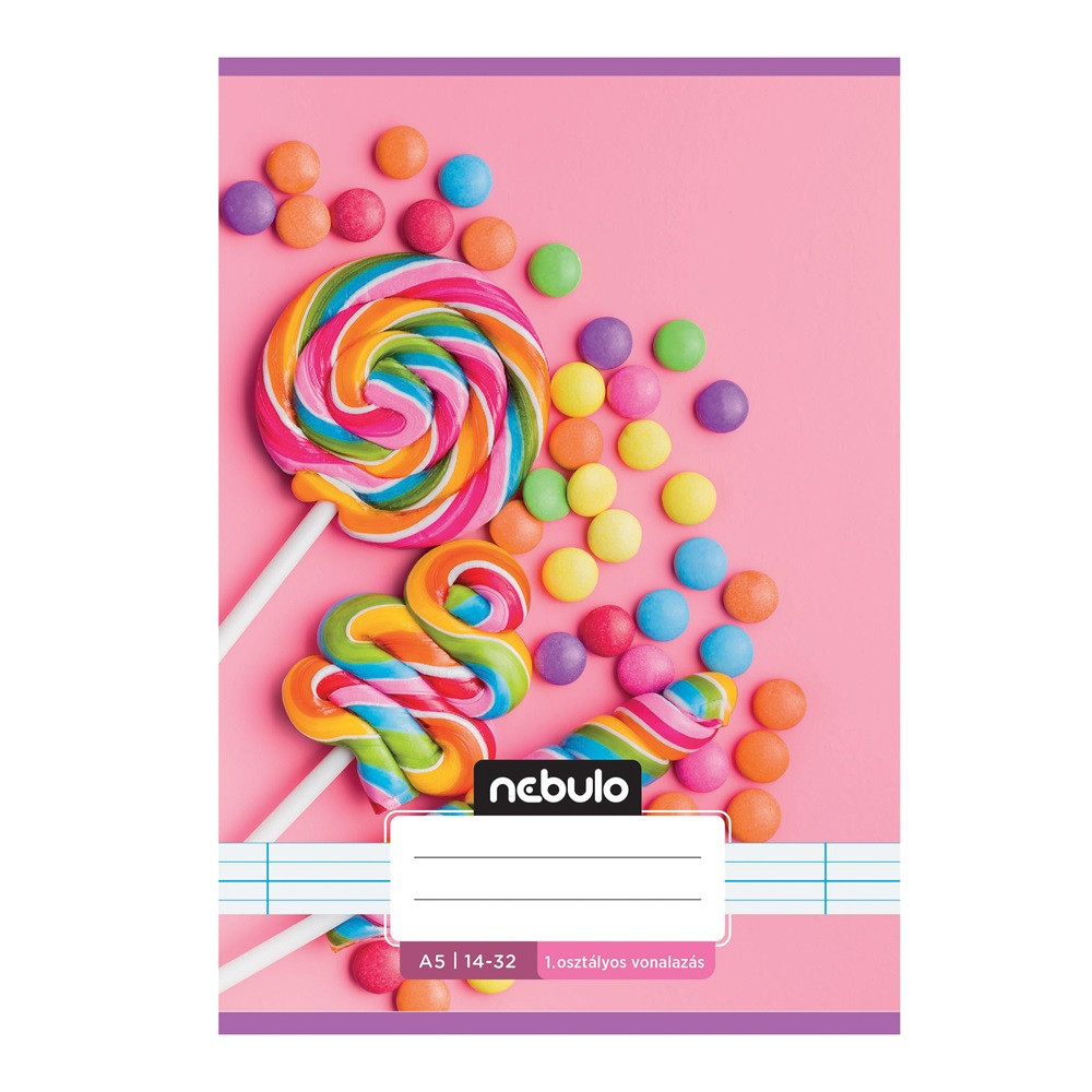 FÜZET, A5, 1. OSZTÁLYOS VONALAS, 14-32, CUKI MINTÁK, 16 DB/CSOMAG NEBULO