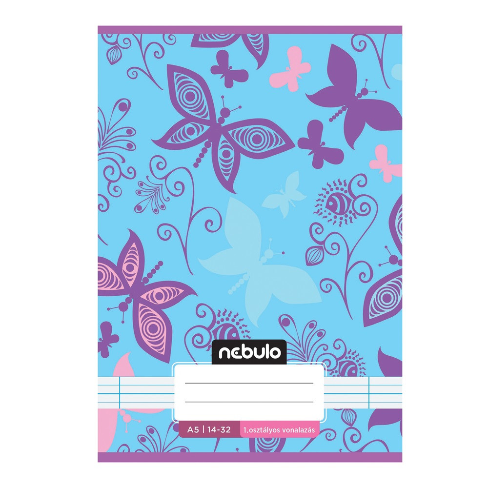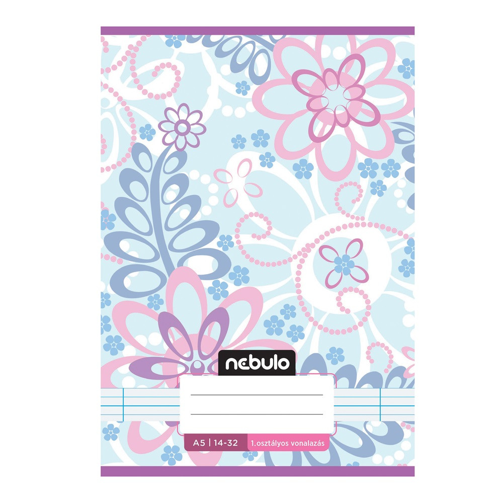 Füzet, A5, 1. osztályos vonalas, 14-32, Cuki minták, 16 db/csomag Nebulo