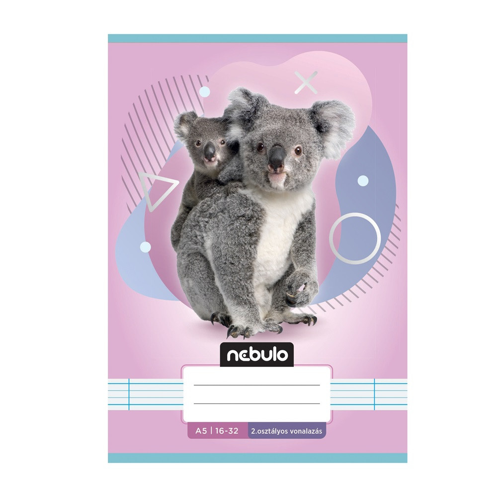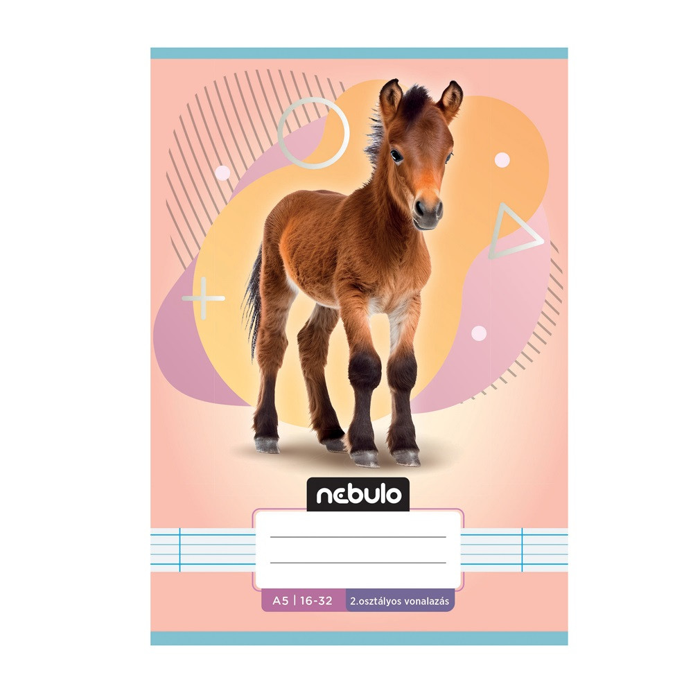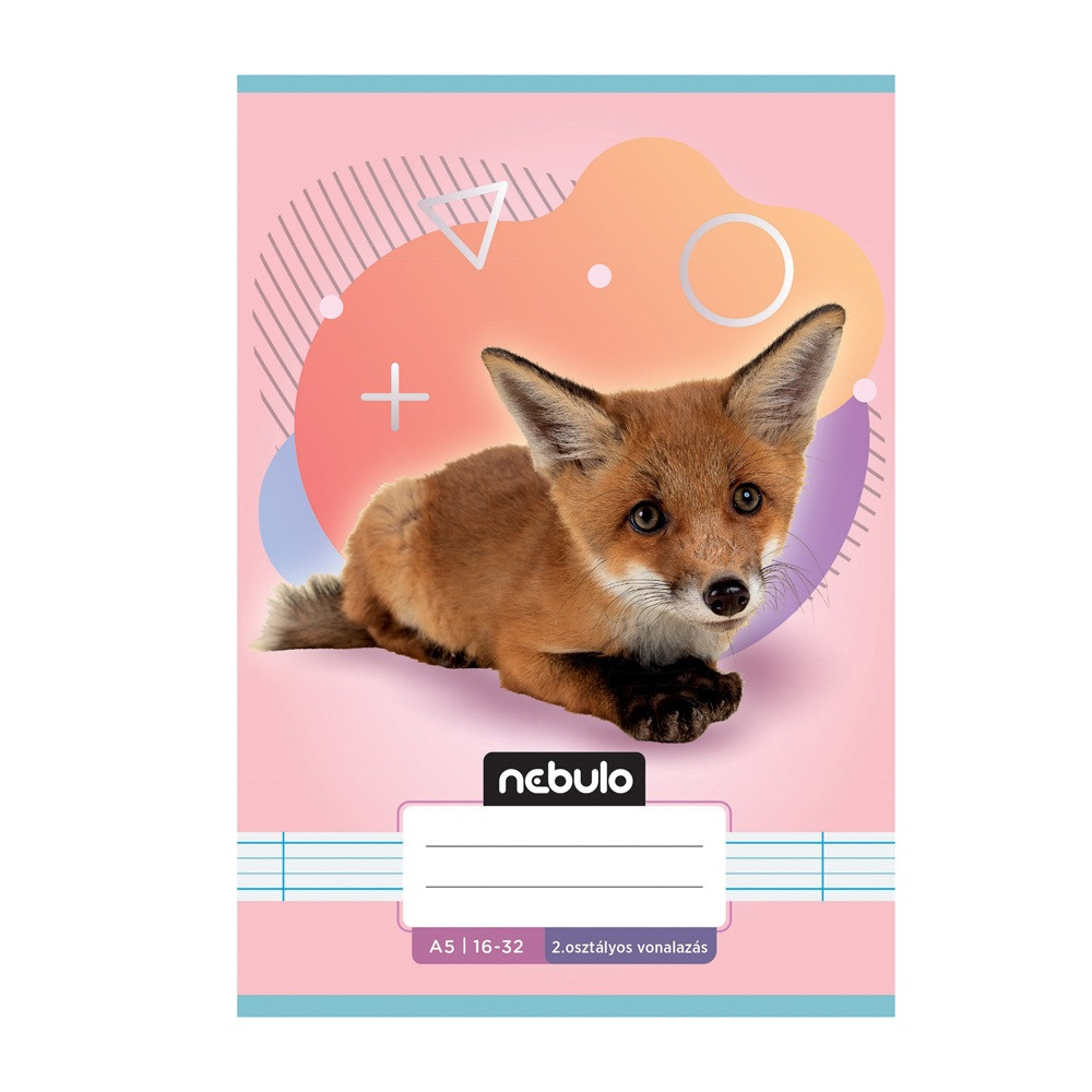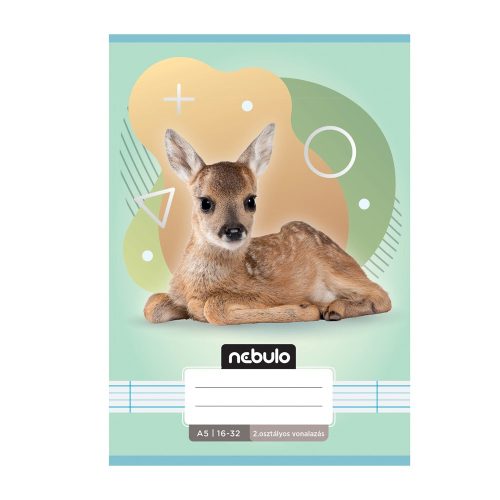 FÜZET, A5, 2. OSZTÁLYOS VONALAS, 16-32, ÁLLATOS MINTÁK, 16 DB/CSOMAG NEBULO