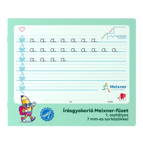Írás gyakorló füzet az 1. osztályosok számára, amely a Meixner Alapítvány együttműködésével és ajánlásával jött létre. Speciális vonalazású és kialakítású füzet alkalmas a Meixner-féle írás tanulás elsajátítására és gyakorlására.