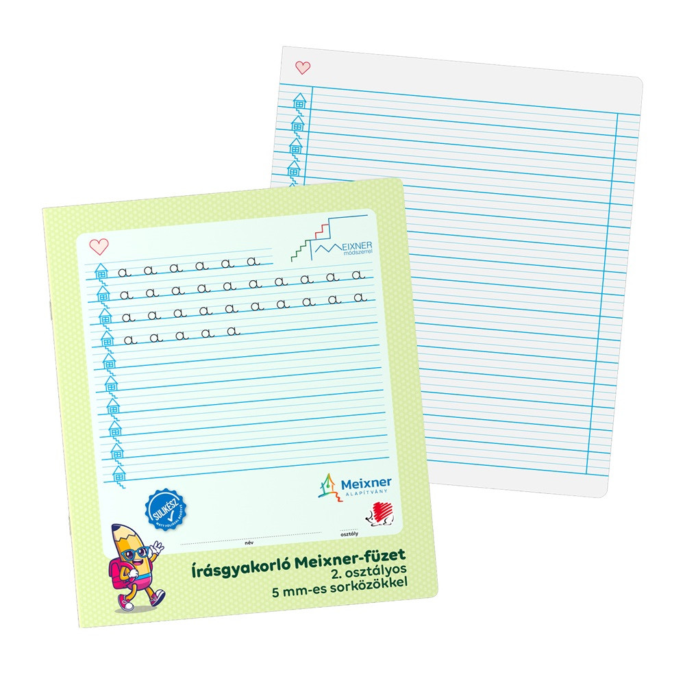 Írás gyakorló füzet a 2. osztályosok számára, amely a Meixner Alapítvány együttműködésével és ajánlásával jött létre. Speciális vonalazású és kialakítású füzet alkalmas a Meixner-féle írás tanulás elsajátítására és gyakorlására.