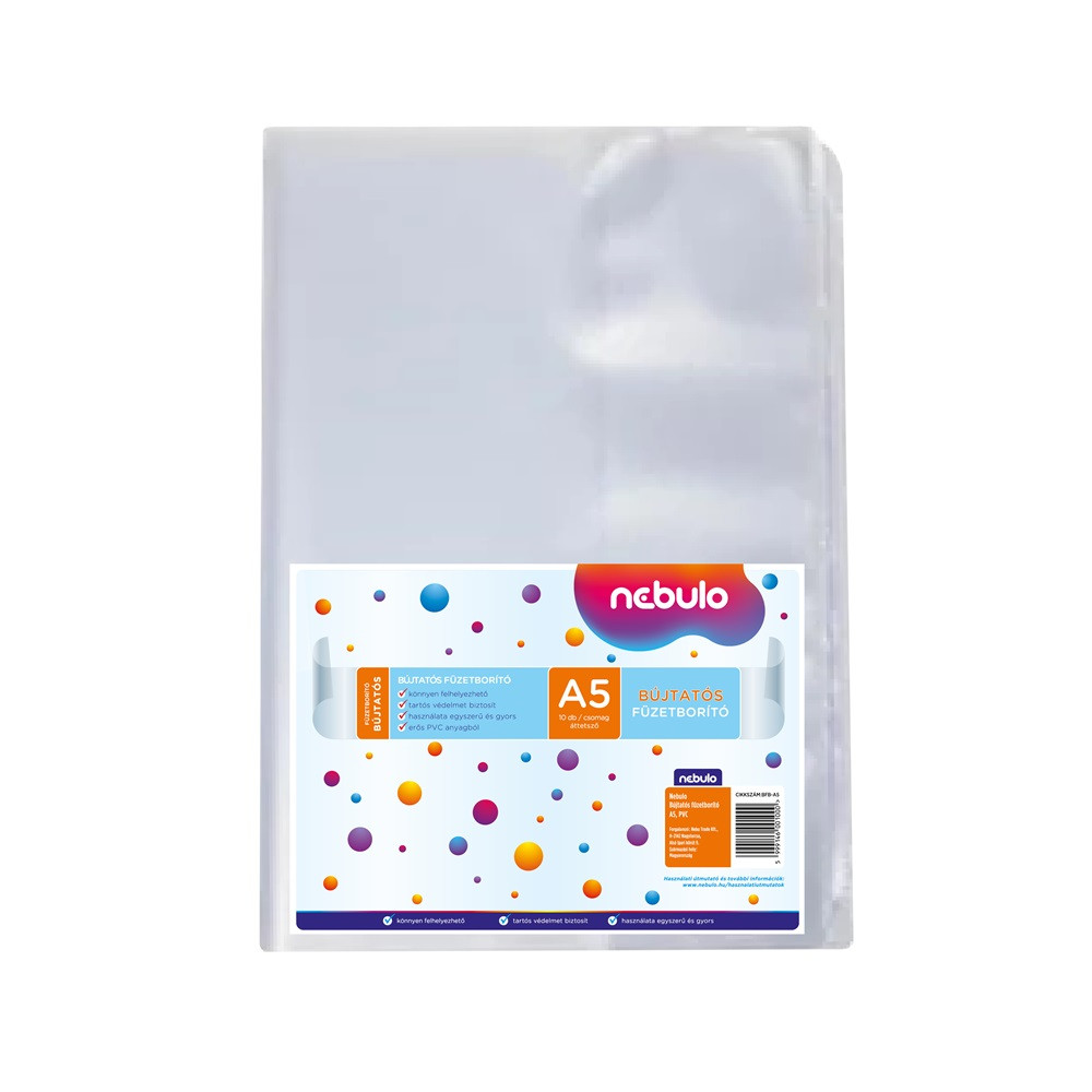 Füzetborító A5, bújtatós, PVC, 10 db/csomag, Nebulo