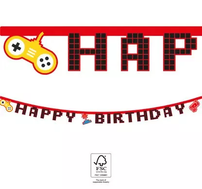 Gaming Party Happy Birthday felirat FSC 2 m