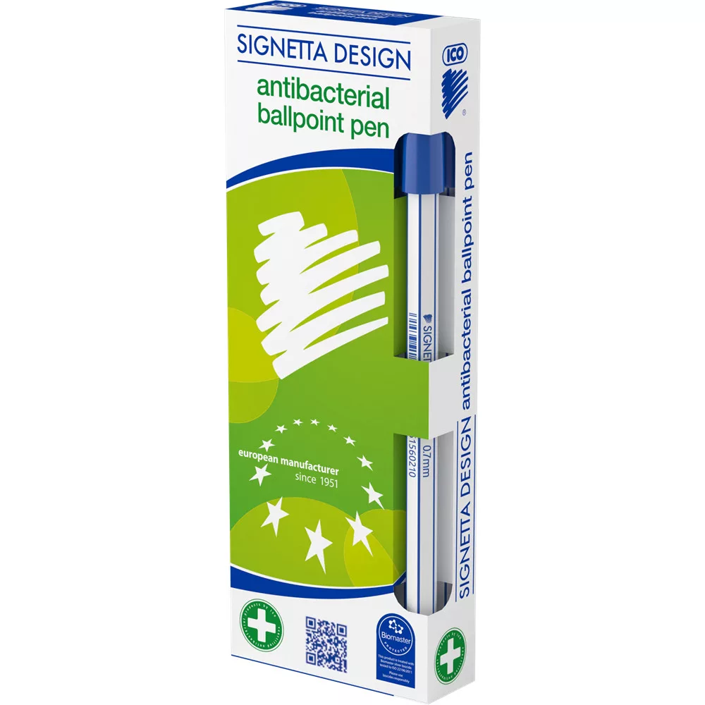 Golyóstoll 0,7mm, kupakos antibakteriális Ico Signetta, írásszín kék
