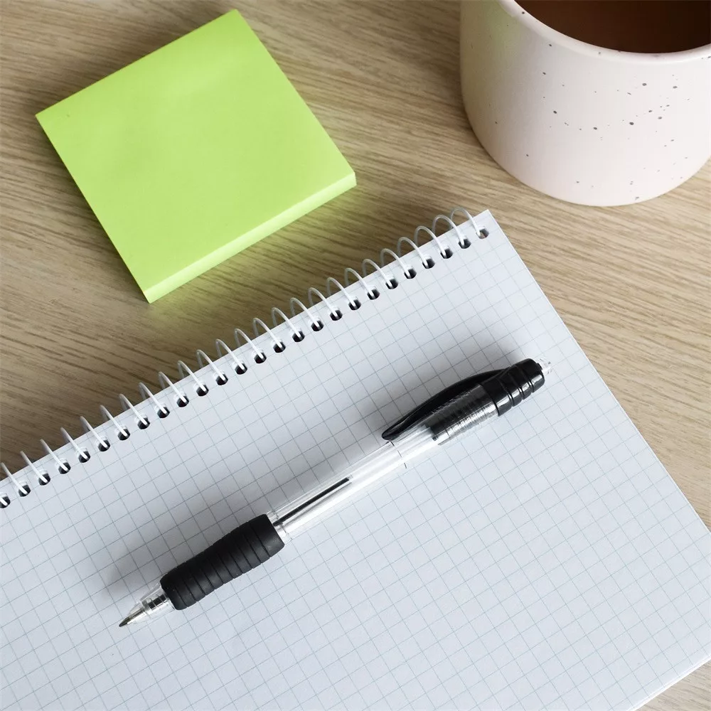 Nyomógombos mechanikájú golyóstoll, áttetsző tolltesttel, amely az írásszínhez igazodik.