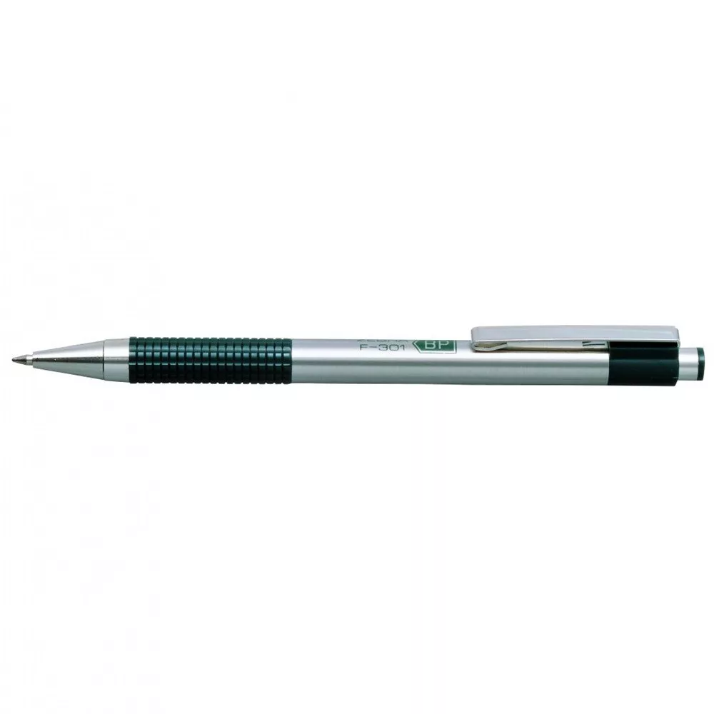 Az F-301 golyóstoll rozsdamentes acél tollteste a stílus és a tartósság záloga. Bordázott markolata garancia a kényelmes és stabil írásra. Markolat színek zöld. Tintaszín: kék. Golyóátmérő: 0,7 mm, írásvastagság 0,24 mm. Betét: F. 12db/gyűjtő, 1152db/karton. Katalóguskód: 766
