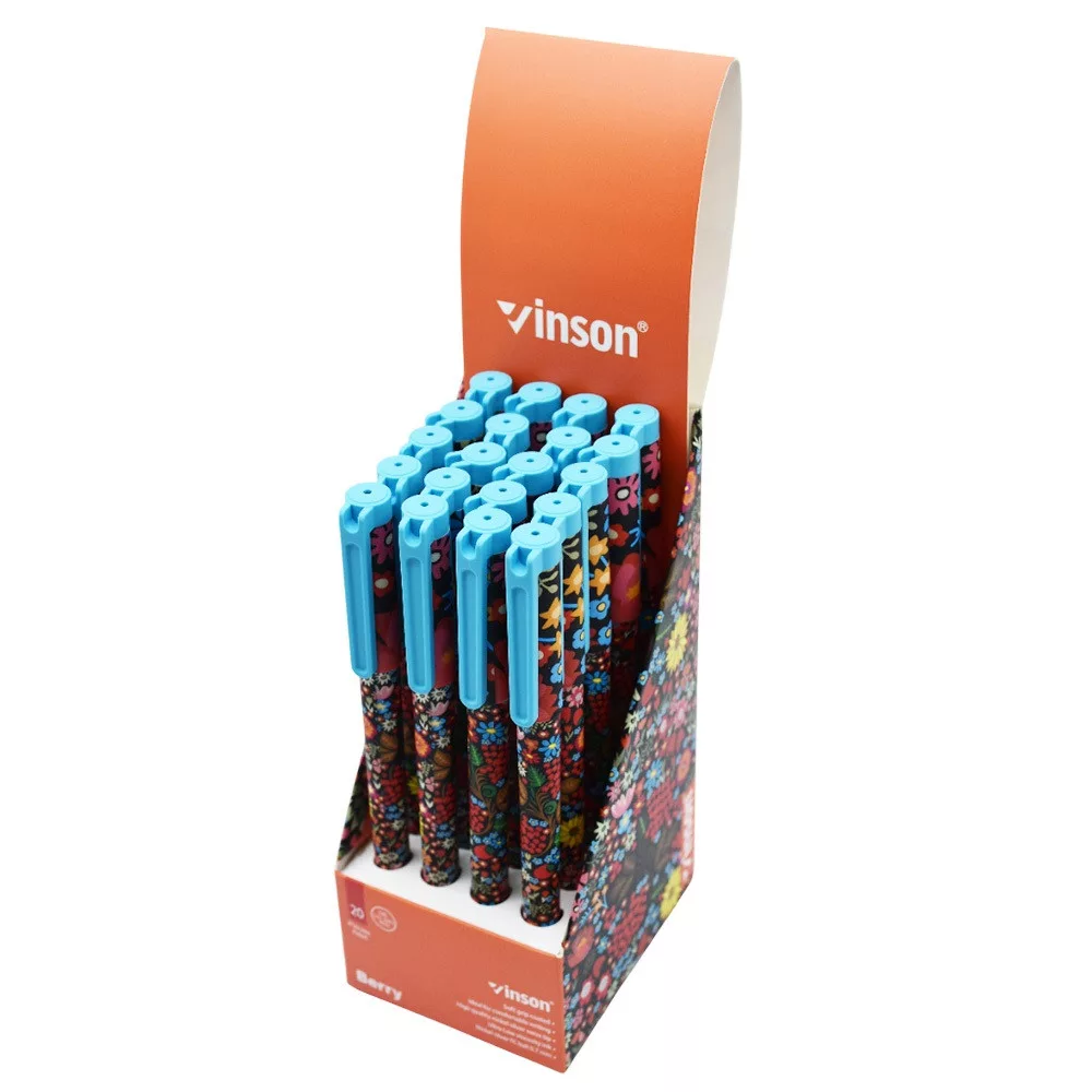 Golyóstoll kupakos, 0,7mm Vinson Berry A186 vegyes test displ 20 db/display