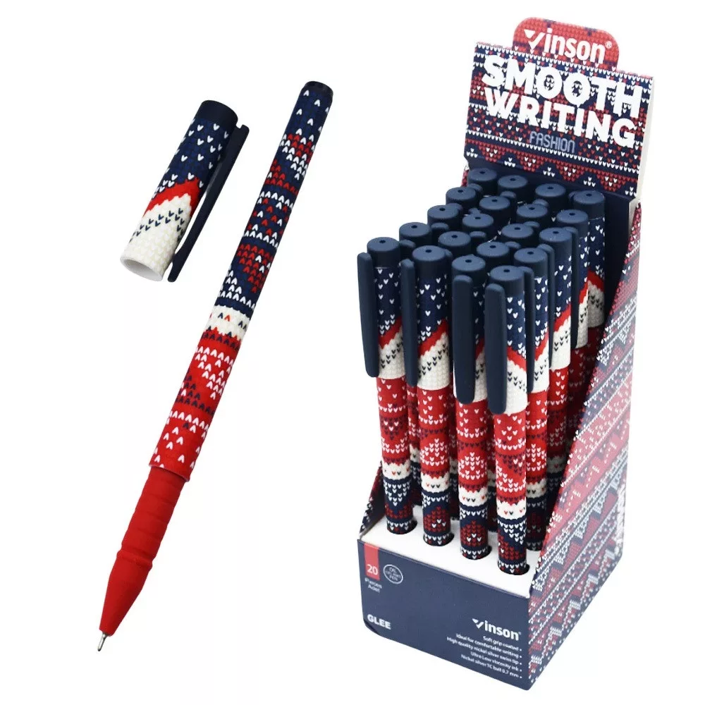 Golyóstoll kupakos, 0,7mm Vinson Glee A12 vegyes test displ 20 db/display