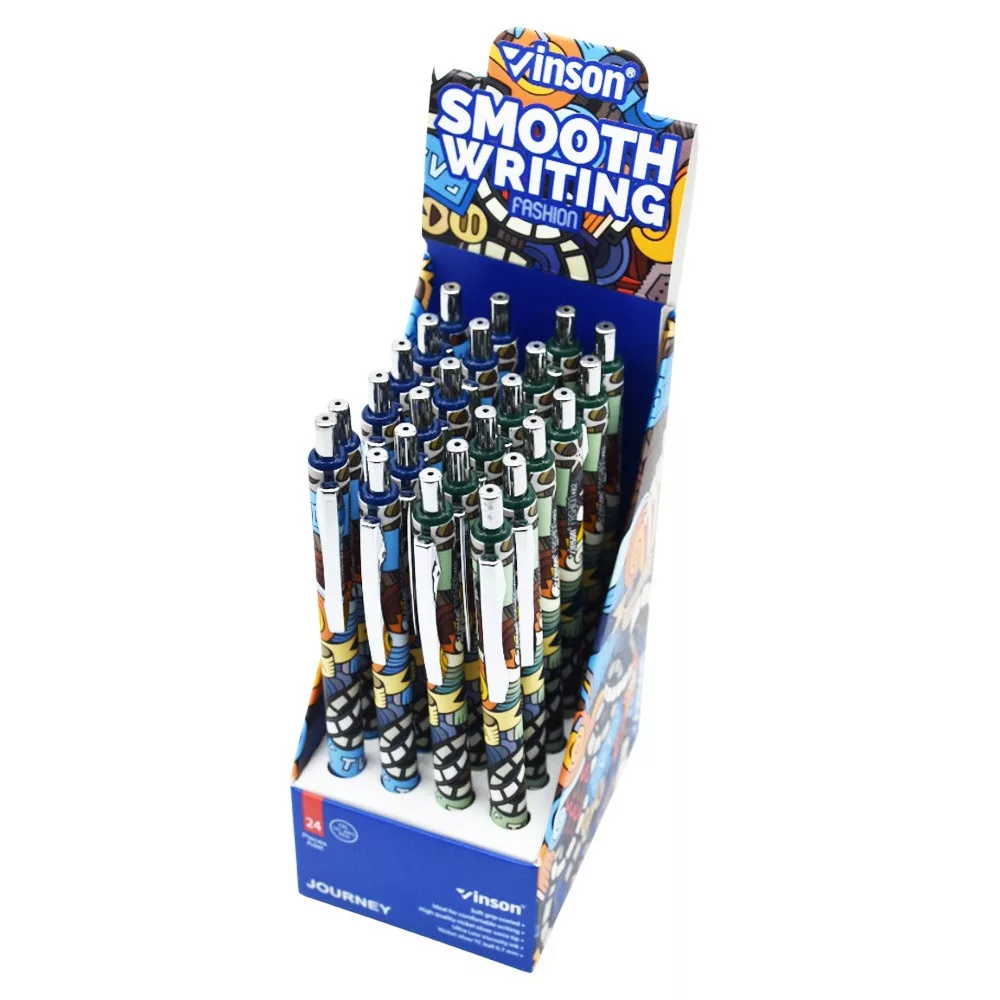 Golyóstoll nyomógombos 0,7mm Vinson Journey K62 vegyes test displ 24 db/display