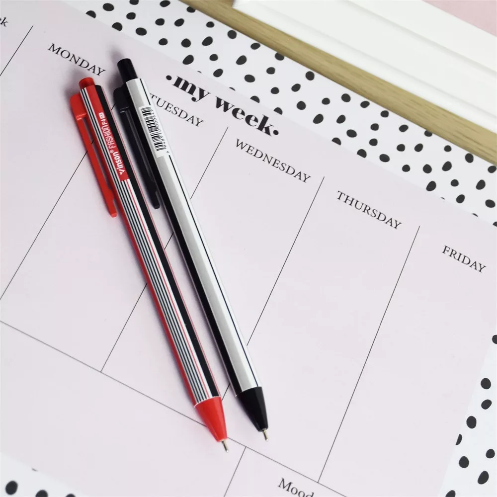 Élvezd az írást! Nyomógombos golyóstoll, az ergonomikusan kialakított puha markolat ideális fogást biztosít minden használó számára. Magas minőségű svájci hegy, 0,7 mm golyómérettel, 0,35 mm írásvastagsággal. Olaj bázisú tintának köszönhetően az írás gyors és könnyed.