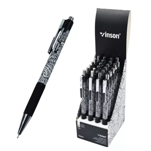 Golyóstoll nyomógombos 0,7mm Vinson Tattoo 103 vegyes test displ 24 db/display