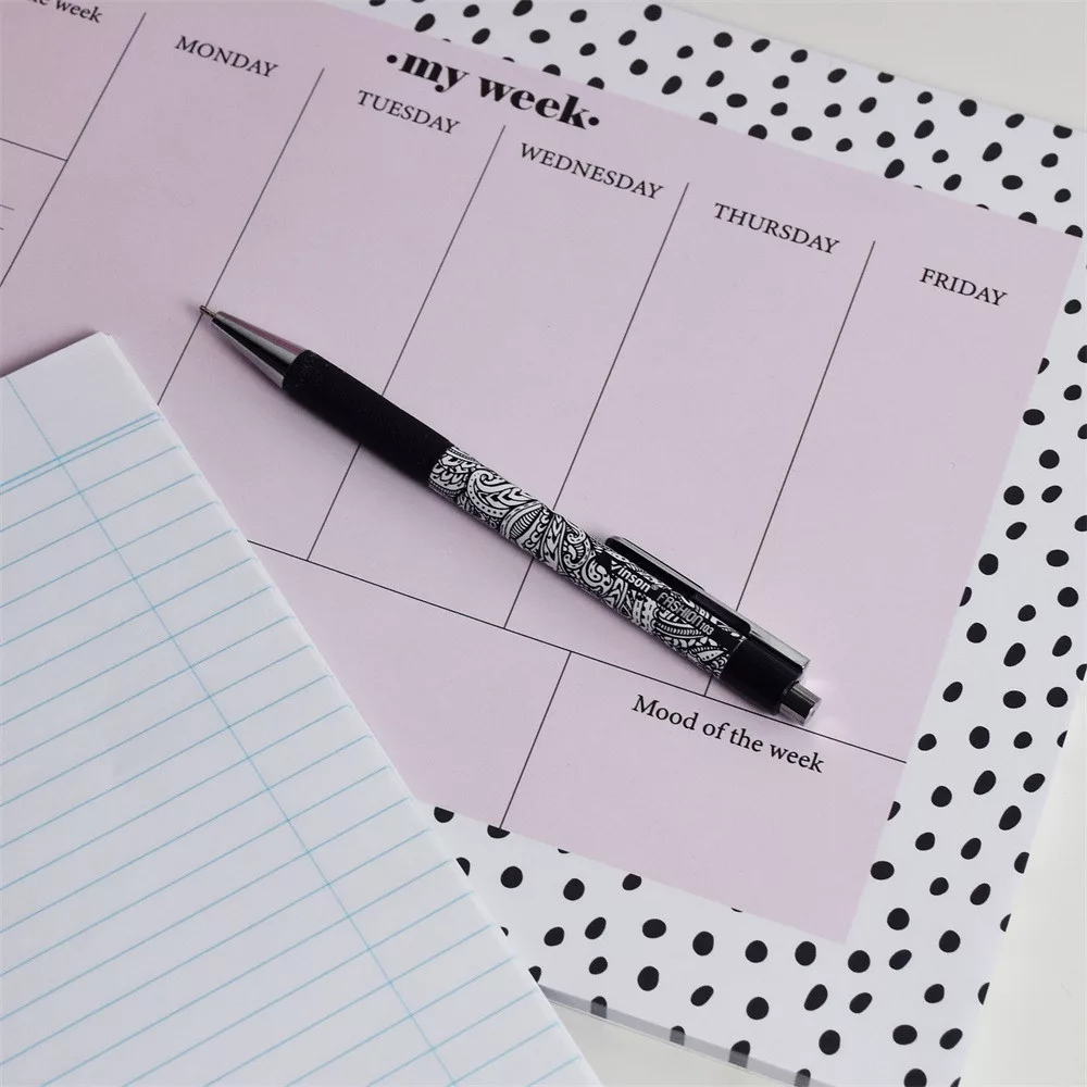 Élvezd az írást! Nyomógombos golyóstoll, az ergonomikusan kialakított puha markolat ideális fogást biztosít minden használó számára. Magas minőségű svájci hegy, 0,7 mm golyómérettel, 0,35 mm írásvastagsággal. Olaj bázisú tintának köszönhetően az írás gyors és könnyed.