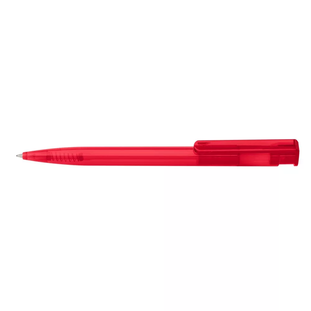 Nyomógombos mechanikával működő golyóstoll, cserélhető X-20-as golyósbetét. Írásszín: piros. Vonalvastagság: 0,8 mm. Íráshossz: 2500 m.Katalóguskód: 20106