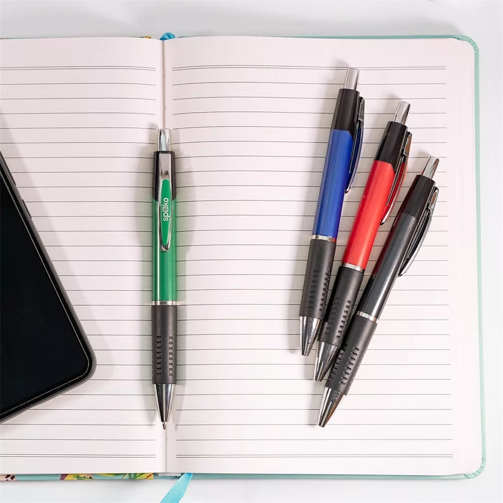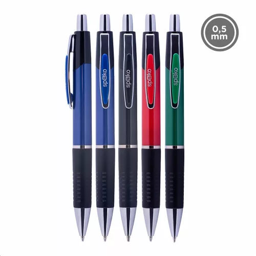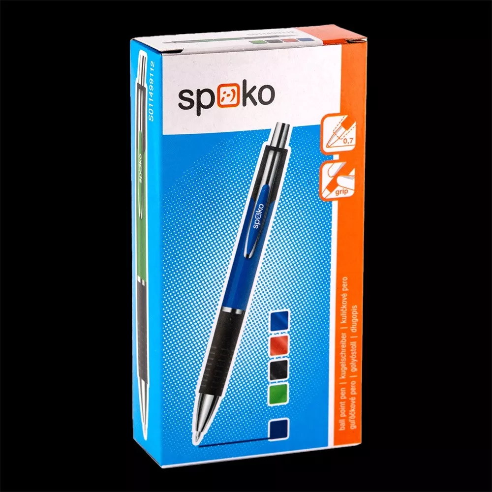 Golyóstoll nyomógombos Spoko, vegyes testszín, írásszín kék