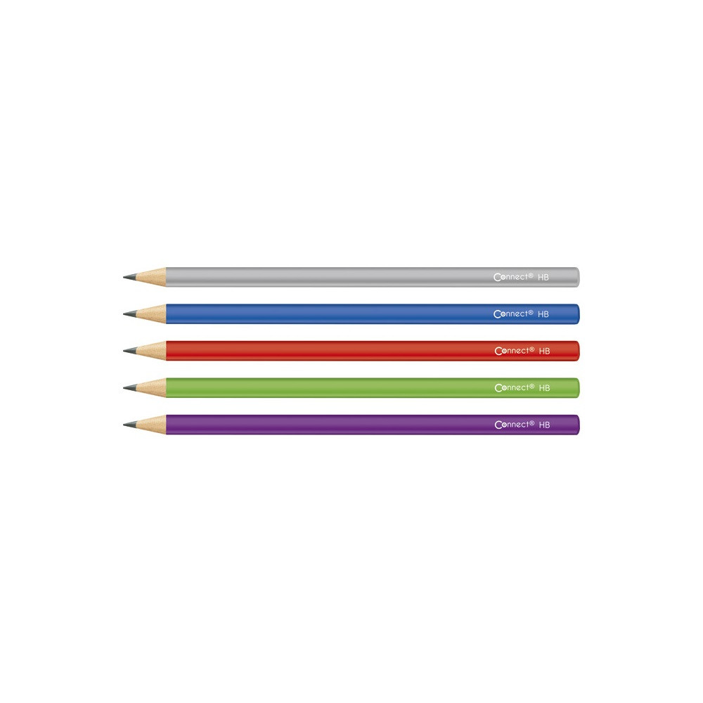 Grafitceruza HB, 5 féle színű kerek test, Connect 72 db/csomag,