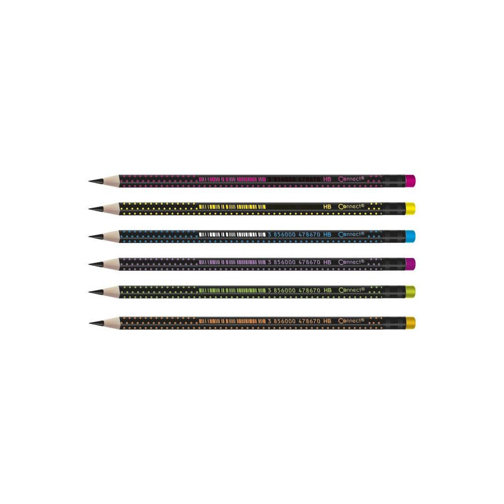 Grafitceruza HB, fekete testű, színes radírral, Connect 72 db/csomag,