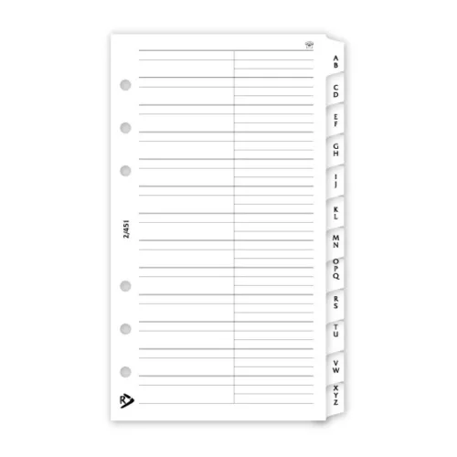 Gyűrűs kalendárium utántöltő csomag  2/451 fehér papíros telefon regiszter M mérethez Realsystem